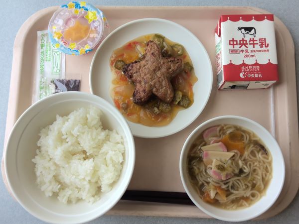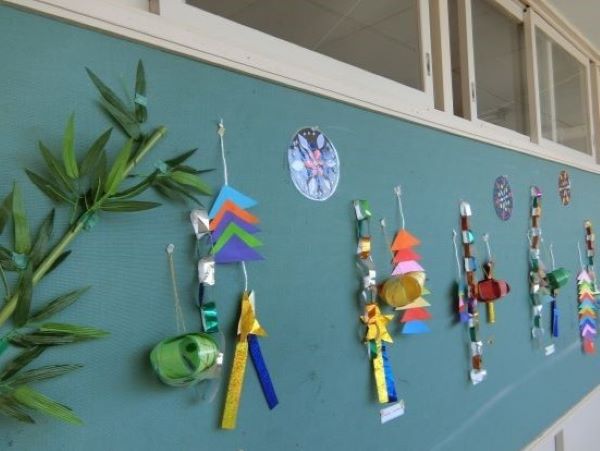 TOPICS 七夕 2025年7月7日 7月7日の給食献立は七夕メニューでした。星形のハンバーグや七夕デザートなど、かわいくておいしいメニューを子どもたちは喜んで食べていました。また、小学部の廊下には、七夕の飾りがたくさん飾られていました。