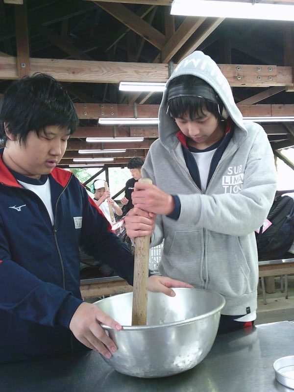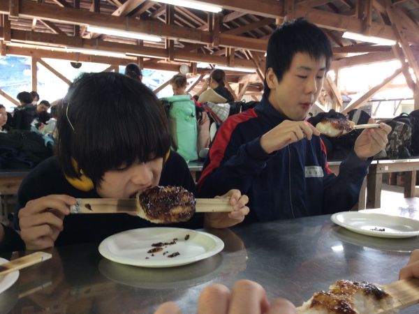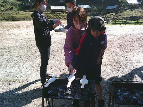 TOPICS/中学部 中学部2年生 野外活動 2025年10月30日 10月30日(木)豊田市総合野外センターへ野外活動に行きました。今年度の野外活動は、「五平餅作り体験」。火起こしをしたり、友達と協力して炊き立てのごはんをつぶしたり、串に付けたもちを焼いたりと、初めての五平餅作りを存分に楽しんでいました。自分たちで作った五平餅は格別!!「おいしい、おいしい!」とみんな夢中で頬張っていました。