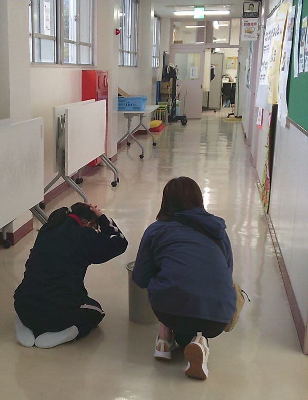 この他にもシェイクアウトの姿勢をとるだけでなく、そのあと避難場所に移動する避難訓練も年3回行っています。