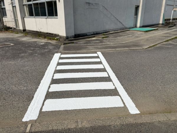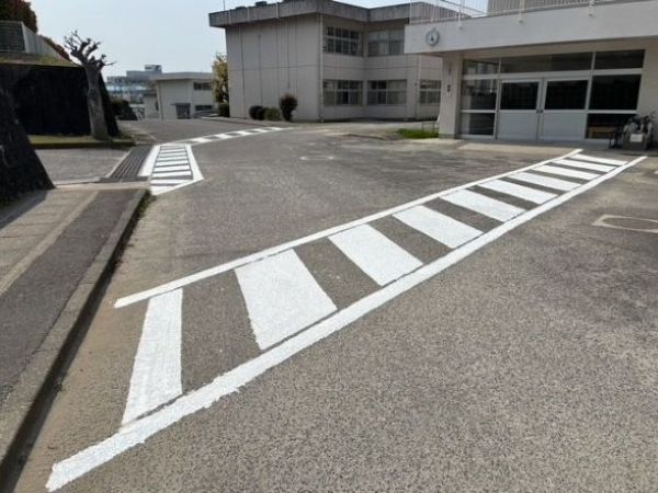 トヨタ自動車三好・明知工場SX会の皆様のボランティア活動により、校内道路の横断歩道の補修をしていただきました。色落ちしていた横断歩道が真っ白になり、子どもたちにも分かりやすくなりました。