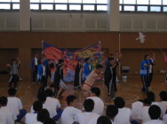 三好養護学校名物「三好ソーラン踊り」初めて見る踊りの迫力にみんなもびっくり。 クラス対抗「三好ソーラン・コンテスト」に向けて、みんな一生懸命練習しました。