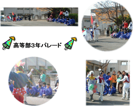 のパレードを見ました。学校の中でパレードが見られるなんて、夢の